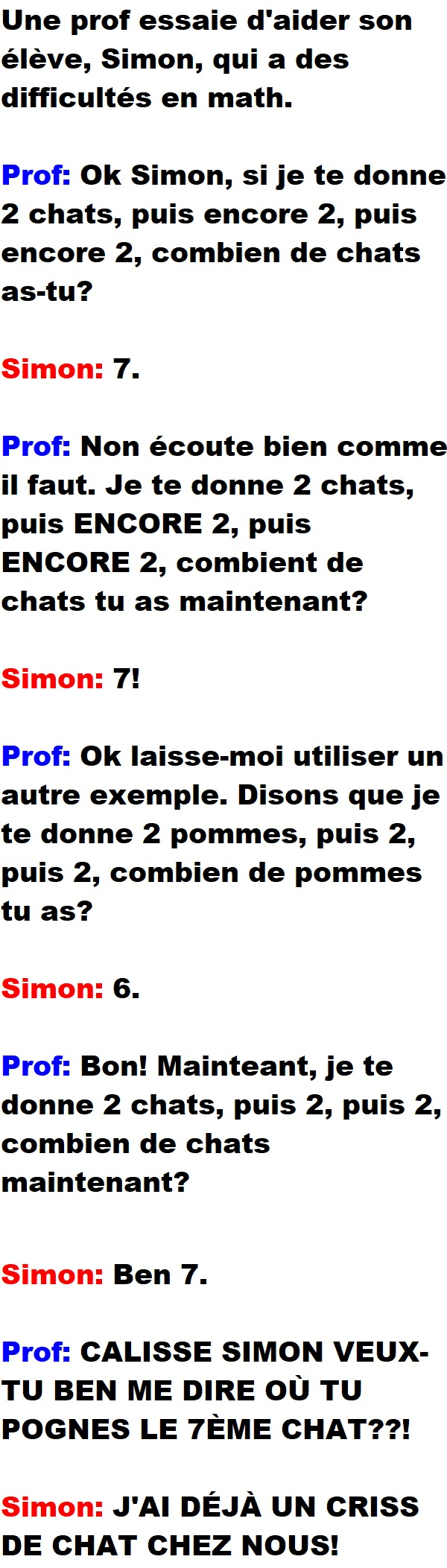 Blagues QuébécoisesUn prof s’énerve contre son élève qui est pas bon en math 👇 FAIS RIRE QUELQU'UN Facebook 4.4K+ Messenger WhatsApp Pinterest0