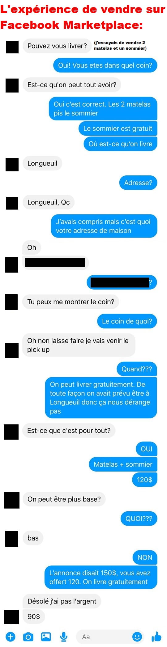 Blagues QuébécoisesL’expérience de vendre sur Facebook Marketplace 👇 FAIS RIRE QUELQU'UN Facebook 753 Messenger WhatsApp Pinterest0