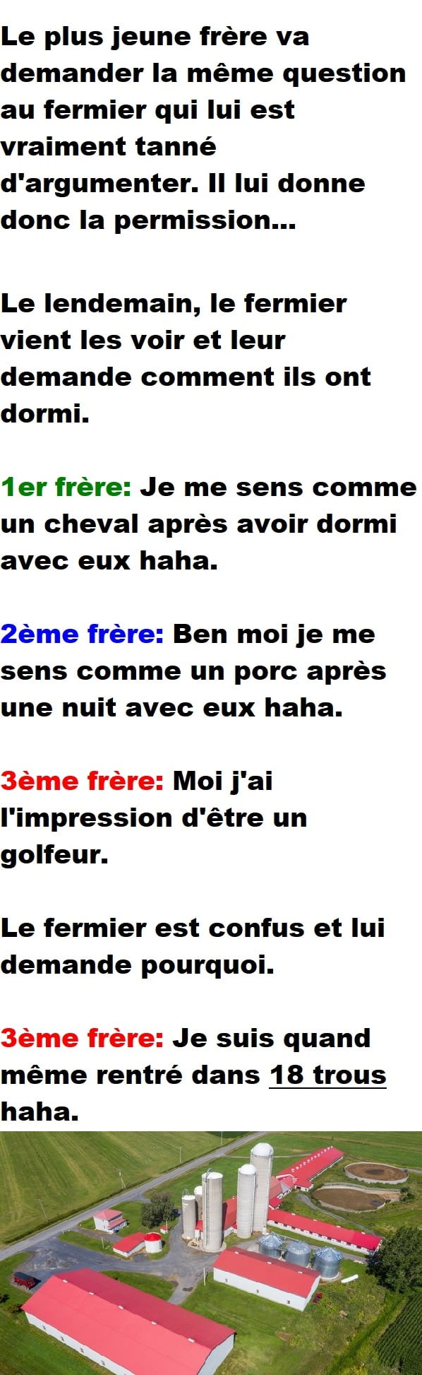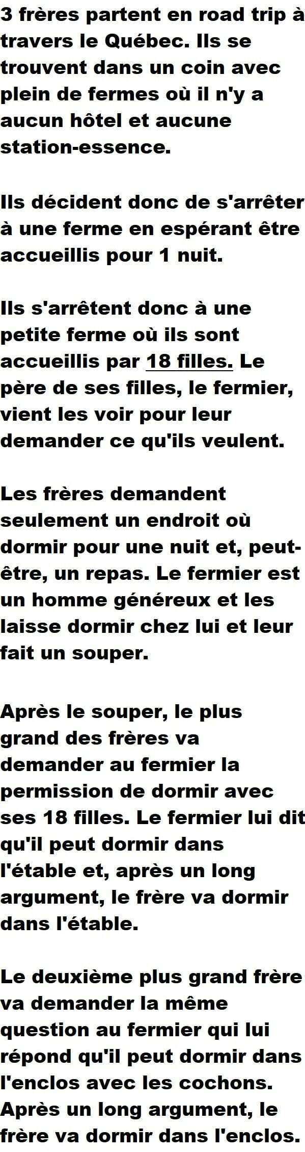 Home / Blagues Québécoises / 3 Frères Veulent Passer La Nuit Avec Les 18 Filles D’Un Fermier