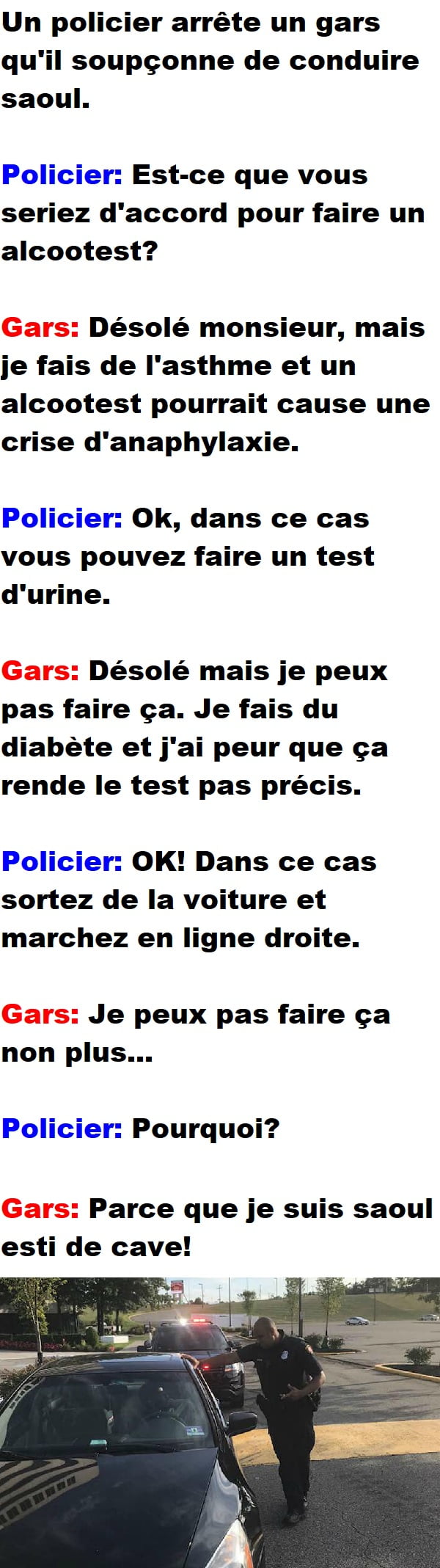 Blagues QuébécoisesUn Policier Arrête Un Gars Qu’Il Soupçonne De Conduire Saoul 👇 FAIS RIRE QUELQU'UN Facebook 62 Messenger WhatsApp Pinterest0