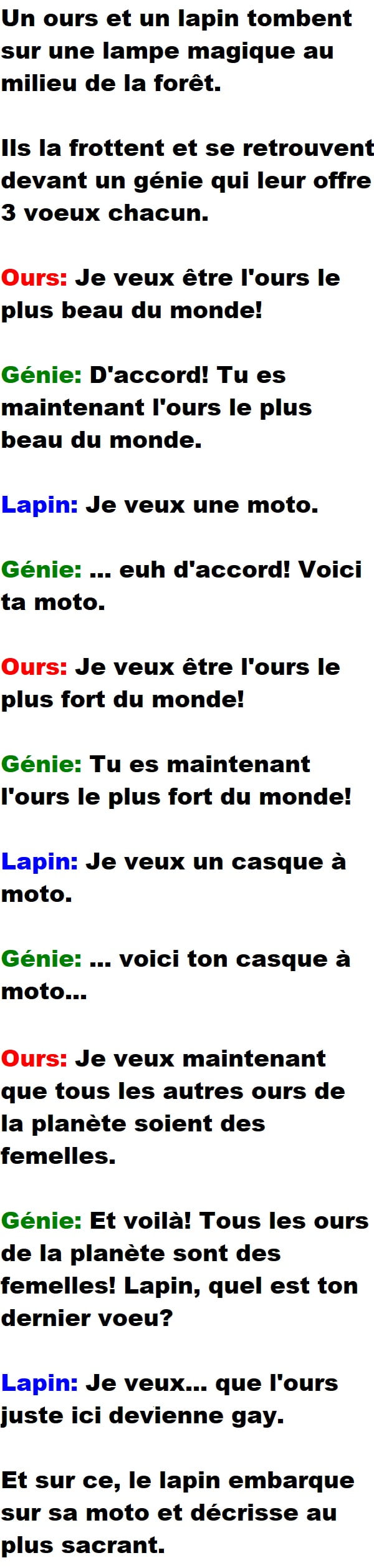 Blagues QuébécoisesUn Ours Et Un Lapin Rencontrent Un Génie 👇 FAIS RIRE QUELQU'UN Facebook 16 Messenger WhatsApp Pinterest0
