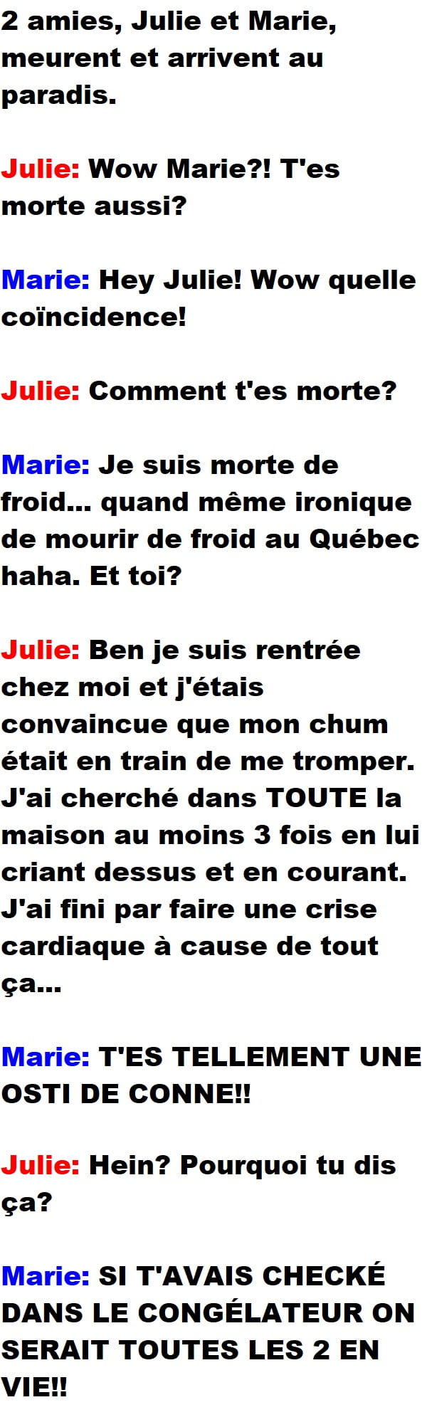 Blagues Québécoises2 Amies Meurent Et Arrivent Au Paradis 👇 FAIS RIRE QUELQU'UN Facebook 13 Messenger WhatsApp Pinterest0