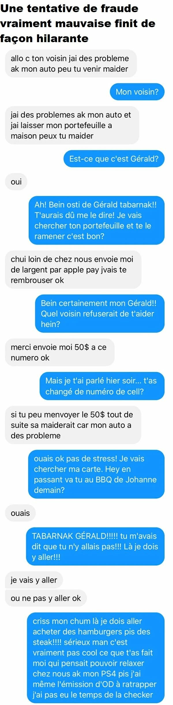 Blagues QuébécoisesUne Tentative De Fraude Vraiment Mauvaise Finit De Façon Hilarante 👇 FAIS RIRE QUELQU'UN Facebook 9 Messenger WhatsApp Pinterest0