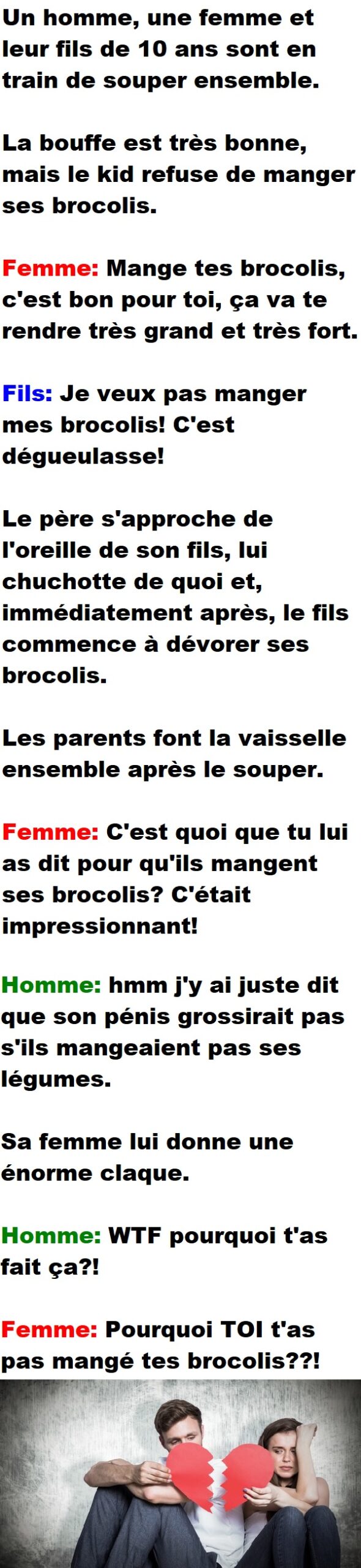 Home / Blagues Québécoises / Un kid ne veut pas manger ses brocolis