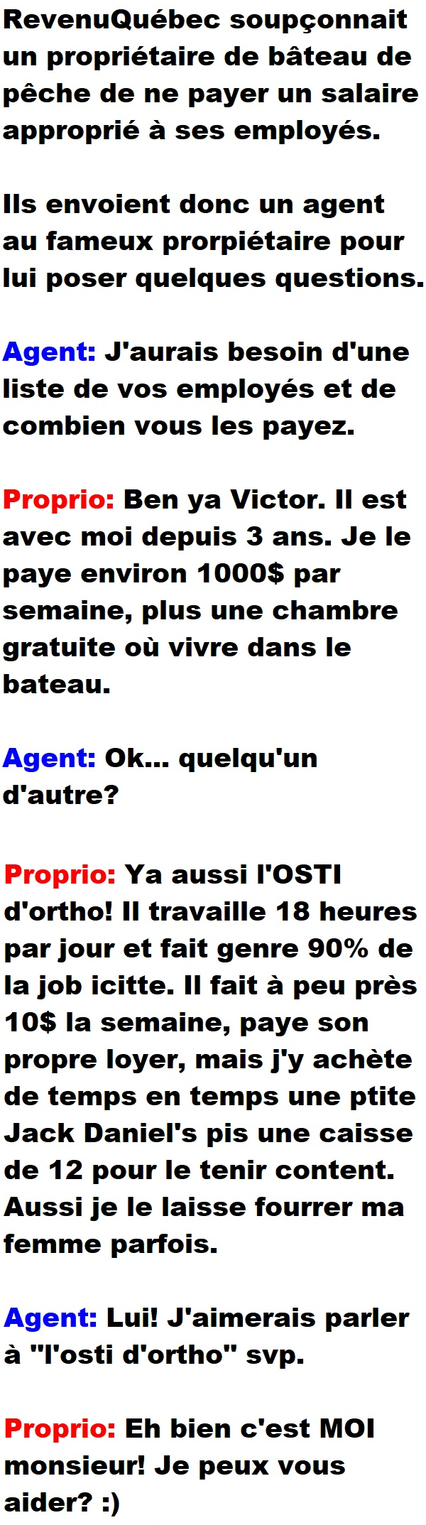 Blagues QuébécoisesRevenu-Québec décide d’enquêter un proprio qui ne paye pas bien ses employés 👇 FAIS RIRE QUELQU'UN Facebook 573 Messenger WhatsApp Pinterest0