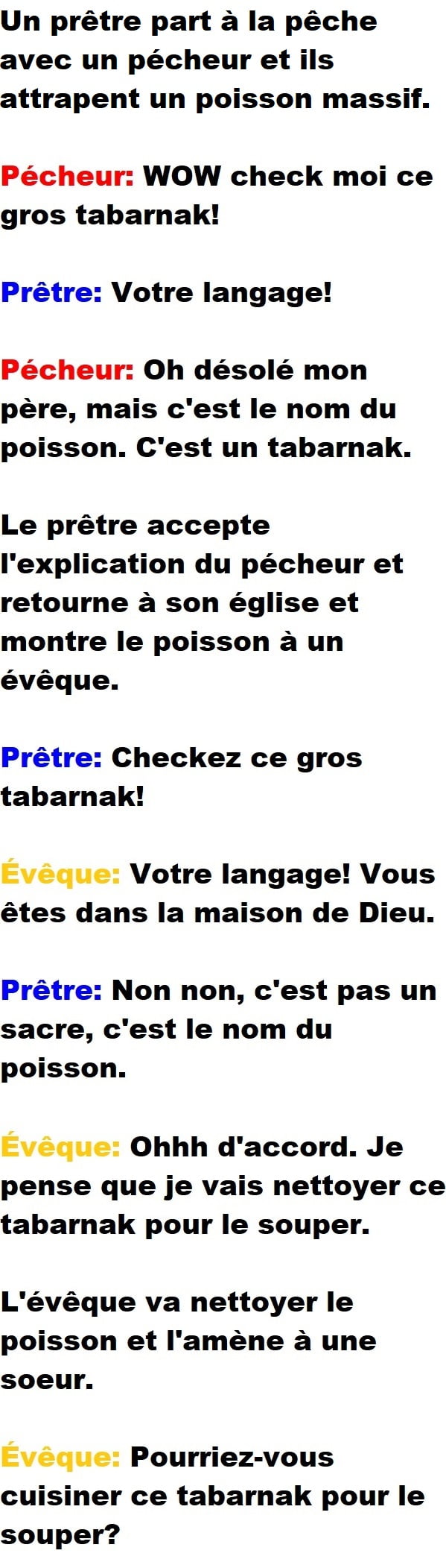 Blagues QuébécoisesUn prêtre part à la pêche et attrape un “TABARNAK” 👇 FAIS RIRE QUELQU'UN Facebook 45 Messenger WhatsApp Pinterest0