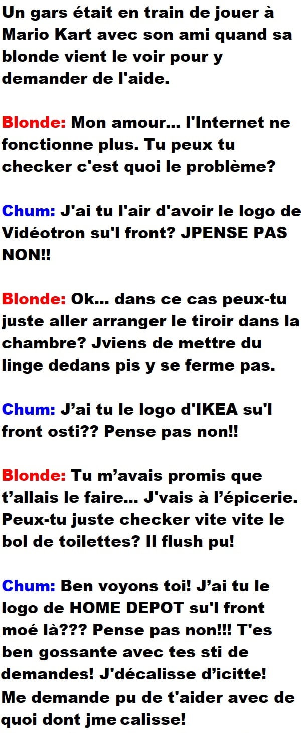 Home / Blagues Québécoises / L’histoire d’un gars trop paresseux pour aider sa blonde… et qui le regrette