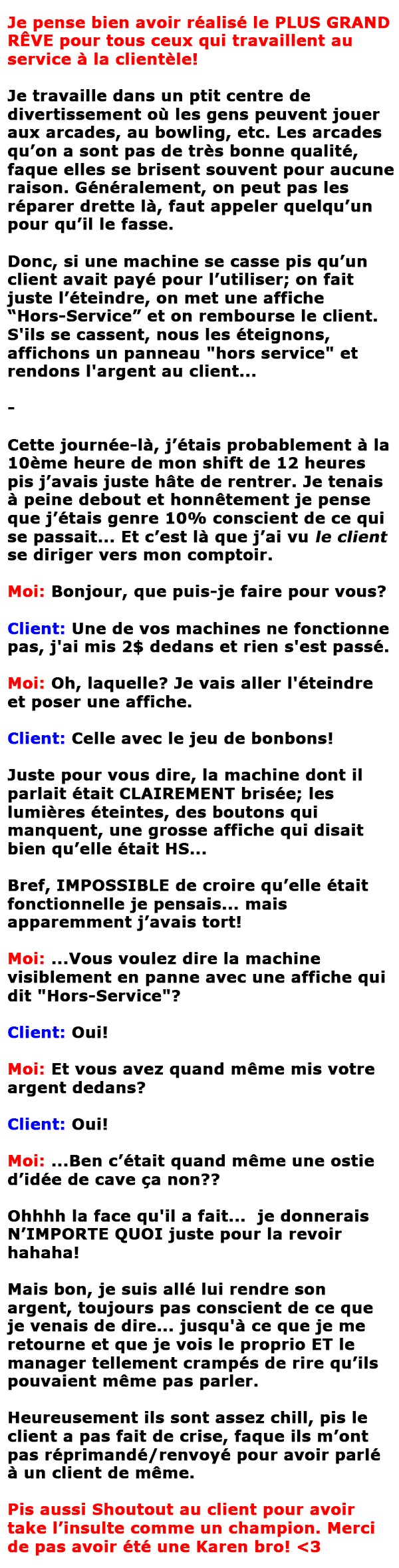 Blagues QuébécoisesJ’ai réalisé le plus GRAND RÊVE de tous ceux qui travaillent au service à la clientèle 👇 FAIS RIRE QUELQU'UN Facebook 14 Messenger WhatsApp Pinterest0