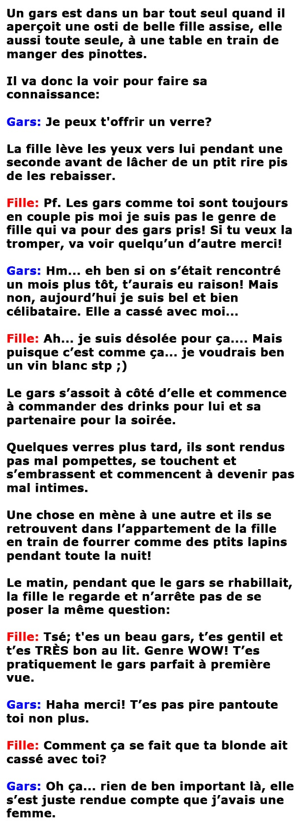 Blagues QuébécoisesUn gars aperçoit une OSTI de belle fille au bar et va l’aborder 👇 FAIS RIRE QUELQU'UN Facebook 43 Messenger WhatsApp Pinterest0