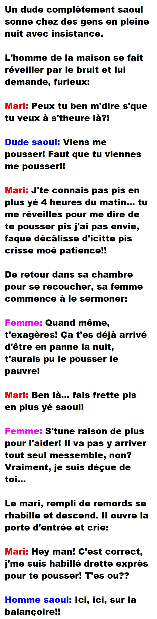Blague de Cave, Blagues QuébécoisesUn homme complètement saoul va sonner à la porte d’un couple au milieu de la nuit 👇 FAIS RIRE QUELQU'UN Facebook 104 Messenger WhatsApp Pinterest0
