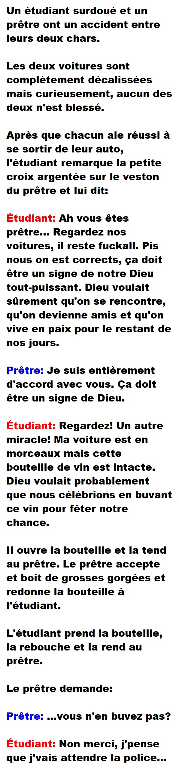 Blague d'Étudiant, Blagues QuébécoisesUn étudiant surdoué et un prêtre ont un grave accident d’auto 👇 FAIS RIRE QUELQU'UN Facebook 183 Messenger WhatsApp Pinterest0