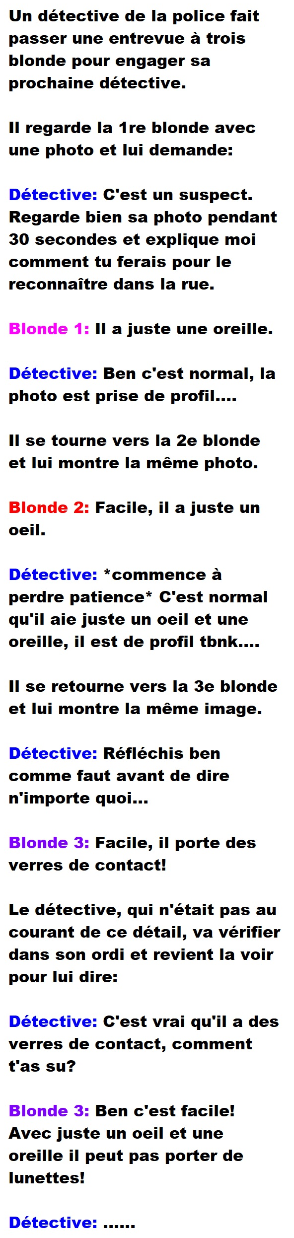Blague de Police, Blagues QuébécoisesUn policier passe des blondes en entrevue pour trouver sa prochaine détective 👇 FAIS RIRE QUELQU'UN Facebook 194 Messenger WhatsApp Pinterest0
