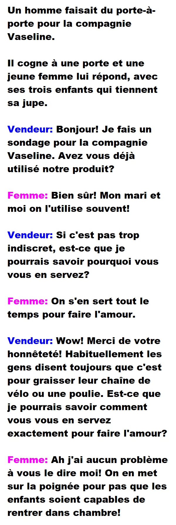 Blague de Cave, Blagues QuébécoisesUn vendeur de Vaseline va faire du porte-à-porte 👇 FAIS RIRE QUELQU'UN Facebook 123 Messenger WhatsApp Pinterest0