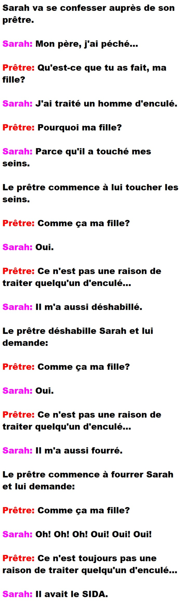 Blague de Religion, Blagues QuébécoisesSarah va se confesser à son prêtre 👇 FAIS RIRE QUELQU'UN Facebook 110 Messenger WhatsApp Pinterest0