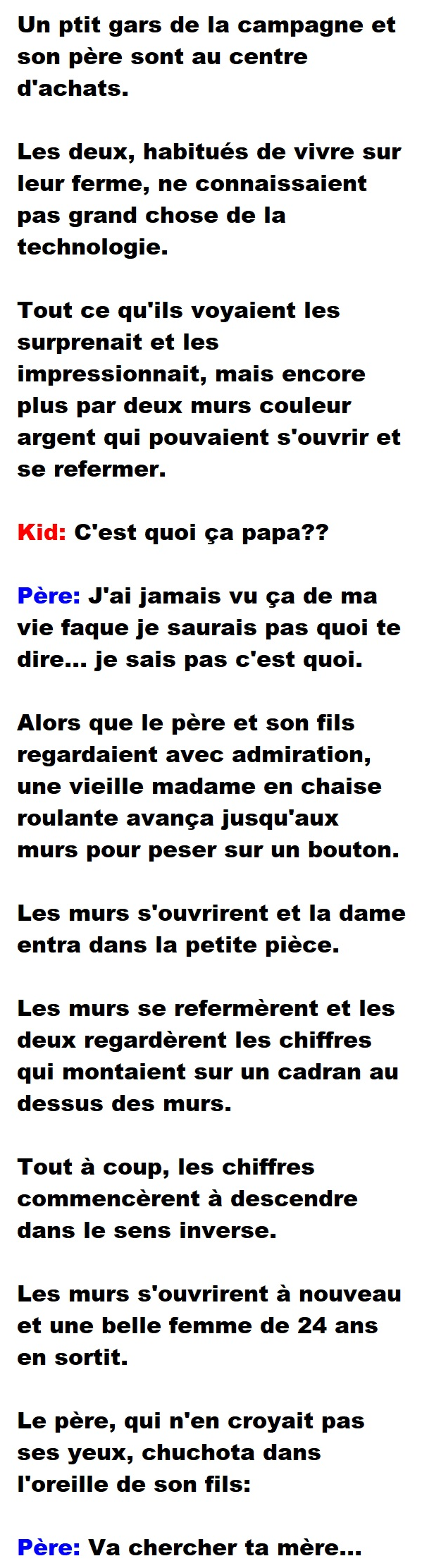 Blague de Cave, Blagues QuébécoisesUn père et un fils, vivant en campagne, voient un ascenseur pour la première fois 👇 FAIS RIRE QUELQU'UN Facebook 1.1K+ Messenger WhatsApp Pinterest0