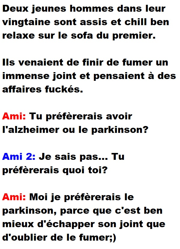 Home / Blagues Québécoises / Blague de Cave / 2 jeunes dans la vingtaine fument un gros bat et se posent une question existentielle