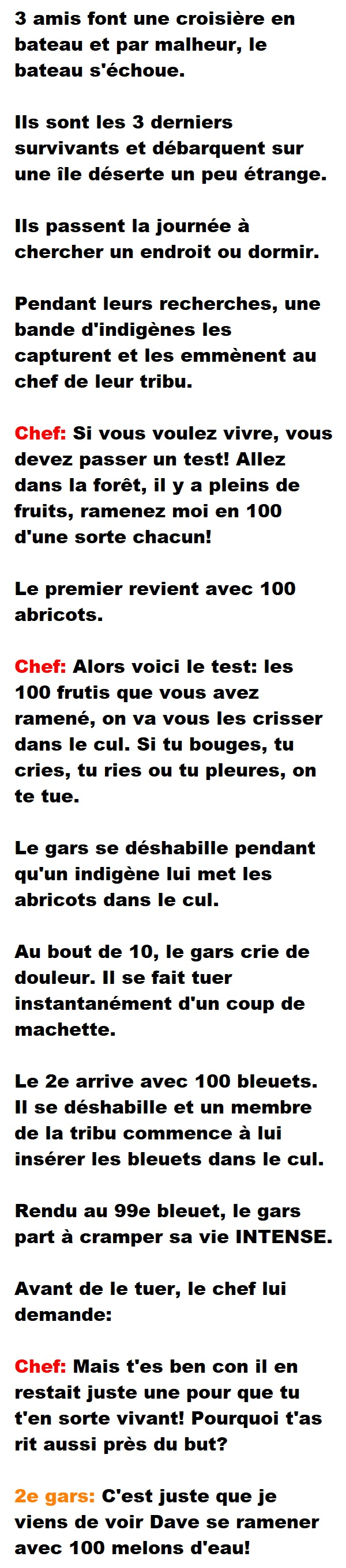 Blague de Cave, Blagues Québécoises3 amis sont naufragés sur une île déserte et se font capturer par une tribu indigène 👇 FAIS RIRE QUELQU'UN Facebook 128 Messenger WhatsApp Pinterest0