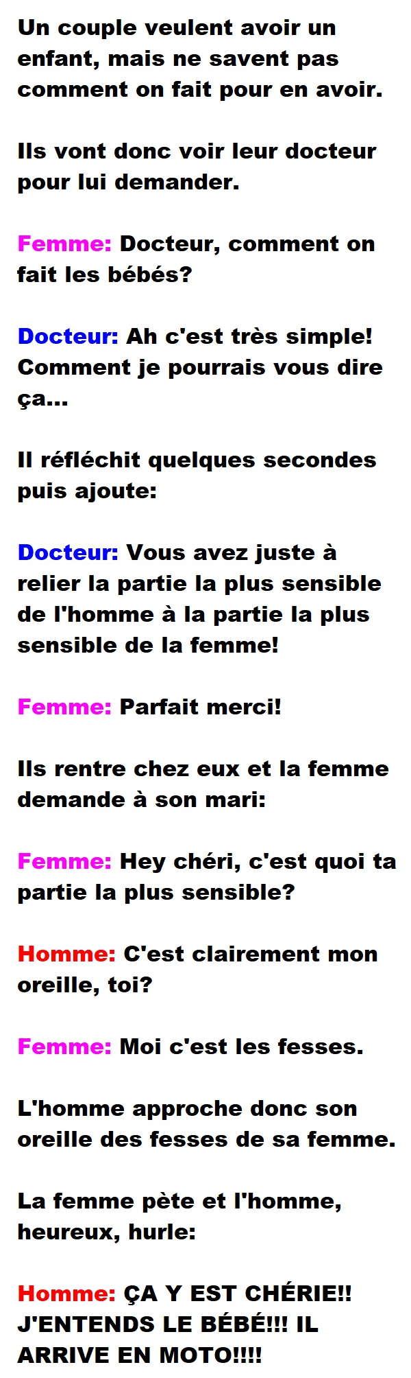 Blague de Couple, Blagues QuébécoisesUn couple qui n’a AUCUNE IDÉE sur comment faire un bébé demande de l’aide à leur docteur 👇 FAIS RIRE QUELQU'UN Facebook 94 Messenger WhatsApp Pinterest0