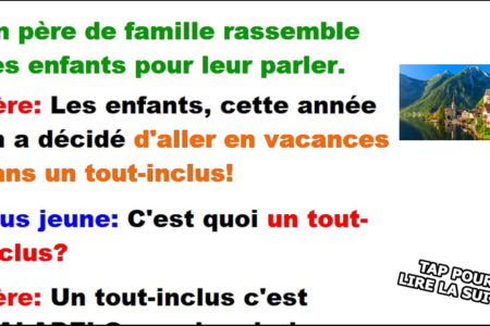 Blague de Papa, Blagues QuébécoisesUn père de famille annonce à ses enfants qu’ils s’en vont dans un tout-inclus