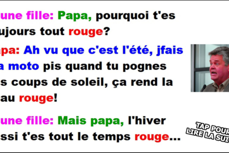 Blague de Papa, Blagues QuébécoisesUne fille demande à son père pourquoi sa face est toujours toute rouge